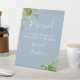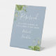 Une élégante verdure fleurie bleue poussiéreuse réservée à l'enseigne commémorative. Réservez un siège à votre cérémonie à la table où ils se seraient assis. Conçu par Thisisnotme©