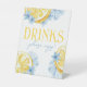 Drink Table Standing Pedestal Sign. Featuring Watercolor Lemons, beautiful elegant dusty slate blue flowers. Perfect for any main squeeze bridal shower, wedding or baby shower !