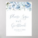 mariage floral bleu bohème, signe du livre d'or. Le texte et les couleurs peuvent être modifiés.