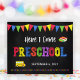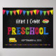 Signe du premier jour de l'école | Poster pré-scolaire—Lancez l'année préscolaire de votre enfant avec un panneau de tableau de bord festif et coloré du premier jour de l'école! Quelle façon amusante et mémorable de se souvenir du premier jour d'école de votre enfant. Customisez la date de votre premier jour d'école et préparez-vous pour toutes ces photos !