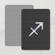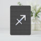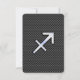 Un signe du zodiaque Sagittaire chromé sur fond noir à texture imprimée de fibre de carbone. Un design urbain moderne et rapide pour une excellente idée de cadeau d'anniversaire personnalisé.