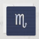 Un symbole du zodiaque Scorpion chromé sur fond texture impression design fibre de carbone bleu marine. Un design urbain moderne et rapide pour une excellente idée de cadeau d'anniversaire personnalisé.