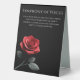 Améliorez votre décoration de réception de mariage avec ce livre d'or moderne et élégant Connectez-vous en noir avec une rose rouge unique. Ce panneau magnifiquement conçu se marie harmonieusement avec votre thème, ajoutant une touche d'élégance à votre table. Explorez la Collection pour un mariage à thème moderne.