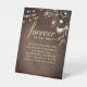 Honorer ceux qui ne peuvent être présents avec ce panneau de souvenir rustique. Doté de lampes à cordes brillantes, d'un arrière - plan à grains de bois et d'un élégant art floral, il est un hommage sincère pour votre journée de mariage.