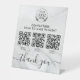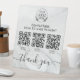 Améliorez votre expérience client grâce à un guéridon élégant et de marque, doté de votre logo et de trois codes QR stratégiquement placés. Permettre aux clients de payer sans effort grâce à leurs applications préférées, ce qui rend les transactions rapides, sécurisées et sans tracas. Parfait pour les espaces de vente modernes qui cherchent à rationaliser les paiements et à élever leur marque!