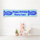 Cette étonnante bannière présente un contour de poisson bleu avec de jolis détails à l'intérieur. Il y a aussi le texte qui dit Pisces à l'intérieur du contour du poisson. Ce design est idéal pour les personnes ayant un anniversaire entre le 19 février et le 20 mars. Il y a du texte personnalisable entre les images pour que vous puissiez personnaliser votre bannière avec le texte de votre choix.