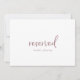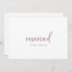 Ce panneau en or rustique rose réservé est parfait pour un mariage campagnard. La carte est recto-verso (tirages sur les deux côtés). Le design sobre et moderne rose or rose vif et blanc présente une calligraphie manuscrite et fantaisie unique avec un style boho minimaliste contemporain. Personnalisable dans n'importe quelle couleur. Gardez le design minimal et simpliste, en l'état, ou personnalisez-le en ajoutant vos propres graphiques et artwork. Utilisez ces cartes pour réserver des chaises ou des tables lors de votre cérémonie de mariage, de votre réception ou de tout événement.