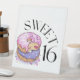 Ce panneau de piédestal présente les mots "Sweet 16" dans une police d'impression unique en lettres noires avec des points de remplissage et des saupoudrées dans ce doux thème et style de 16 ans. Imprimé avec une impression numérique pleine couleur de haute qualité disponible en 4 tailles en polystyrène 1/16" blanc 10" x 12" avec base de piédestal 3".