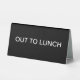 Des panneaux de bureau en noir et blanc classique vous permettent de faire savoir aux collègues et aux collègues de bureau que vous êtes loin de votre bureau pour déjeuner. Fournissez-en un à chaque employé et membre du personnel. Inclut l'impression sur les deux côtés dans des panneaux de style de tente conçus par des professionnels et à un budget simple.