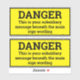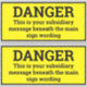 Deux signes d'avertissement. Modifiez le libellé pour afficher votre propre message sur chacun. Taille moyenne. 6 pouces de large.
