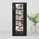 Cette élégante Photo Booth Signet Save the Date card en noir dispose d'une police de script moderne associée à des polices serif et sans-serif, créant un look contemporain. L'avant affiche cinq images du couple, tandis que l'arrière vous permet de télécharger un code QR et un lien vers votre site Web mariage. Pour customiser la conception, cliquez simplement sur le bouton "Modifier/Personnaliser". Ces signets de bandes photos à jour sont un moyen parfait d'annoncer votre journée spéciale à vos amis et à votre famille.