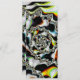 Ce signet coloré présente un art fractal en spirale psychédélique abstrait en noir et blanc avec des accents jaunes, orange, bleus et verts.