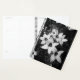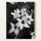 A black and white floral composition created from mirrored blossoms, forming a calm and slightly surreal pattern. Soft petals and dark centers create a hypnotic, balanced image that feels both peaceful and mysterious