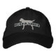 Ce fantastique casquette Border Terrier est brodé avec la silhouette de la race de chien, debout avec son nom imprimé devant. La silhouette Bordure Terrier est gris argenté foncé et le contour du texte blanc. Ça a l'air fantastique sur nos casquettes noirs !