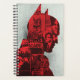 Feature Robert Pattinson | Batman's head silhouetted in red against several newspaper clippings of Batman and Bruce Wayne.