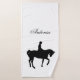 Cheval de dressage et silhouette noire de cavalier. Photographie.