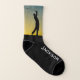 Un golfeur est capturé en silhouette pour ces chaussettes de golf amusantes. Le nom est facilement personnalisé.