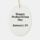 Cet ornement présente la silhouette d'un pédiatre mâle avec des silhouettes d'enfants et un bébé sur le devant. Sur le dos, il est dit "Journée nationale des pédiatres" et la date du 28 janvier. Mais, vous pouvez changer cela si vous ne voulez pas cela pour l'observance. Sur le dos vous pouvez mettre le nom du médecin et l'année que vous voulez. Ou mettez ce que vous voulez sur le dos. Cela fait un grand cadeau pour le membre de la famille qui est un pédiatre d'être représenté sur le sapin de Noël. Ou, il fait un grand cadeau pour votre pédiatre préféré pour Noël, la Journée Nationale des Pédiatres (28 janvier) ou à tout moment que vous voulez. REMARQUE : En raison du style design, vous ne pouvez acheter ceci que sur les ornements OVAL. Conçu par Sheila Cicchi, Brownielocks.com. Tous droits réservés.