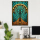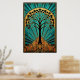Un mélange sophistiqué de la nature et de l'architecture des gratte-ciel des années 1920. Cette illustration saisissante présente une silhouette noire audacieuse d'un érable, ses feuilles formant une canopée parfaite sur un soleil radieux doré. L'arbre s'élève d'une base Art déco complexe et étagée aux tons chauds orange et or, encadrée par une majestueuse arche géométrique sarcelle. Cette pièce opulente est parfaite pour ajouter une touche de glamour de l'ère Gatsby à un bureau moderne, une étude ou un salon de luxe.