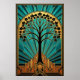 Silhouette d'érable Art déco élégant or sarcelle