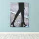 Silhouette noire Graphique Signe (détail des jambes) pour une boutique (célèbre Champagne). St Malo, Bretagne 2008. Impression de toile.
