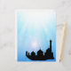Silhouette noire d'une mosquée sur un ciel bleu avec soleil et soleil.