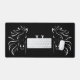 Silhouettes et monogramme modernes de cheval blanc sur le Mat noir de bureau.