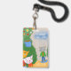 Silly cartoon cat student hall pass badge with teacher's name .