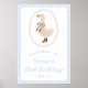 Bienvenue aux invités à votre fête avec ce signe de bienvenue amusant et charmant. Doté d'une oie fantaisiste, vêtue de bottes et d'une en vichy bleue douce, ce design ajoute une touche d'amusement et d'élégance à toute fête d'anniversaire.