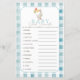 This cute "silly goose" boy's baby scramble/baby shower game card features a goose with a party hat and balloons on a blue gingham plaid background. Personalize it for your needs. You can find matching products at my store.