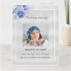 Un programme élégant de 4 pages. Un arrière - plan en faux argent, un cadre en faux argent, des fleurs bleu clair, des fleurs, de l'espace pour votre photo sur le devant. Personnalisez et ajoutez le nom, les dates et votre texte.
