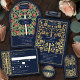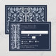 Celebrate your special day with these Royal Medieval Sword Wedding RSVP Cards against a blue background. You can customize this further by clicking on the "PERSONALIZE" button. PLEASE NOTE: The silver on this item is NOT real foil and is printed in flat colors