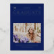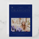 Partagez votre fête spéciale avec votre famille et vos amis. Cette carte de faire-part moderne de graduation présente un texte élégant en feuille d'argent "Graduate" sur un arrière - plan bleu foncé. Vous pouvez personnaliser le texte et les photos. Des fournitures et des cadeaux de remise de diplômes correspondants sont disponibles dans mon magasin BaraBomDesign.