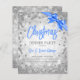 Elégant Formal Company & Corporate Christmas Party / Cocktail / Dinner Party Invitation Modèle avec Diamants Argent, Parties scintillant Confetti & Bleu Ruban. Impressionnez vos amis avec ce design d'invitation sophistiqué et moderne.