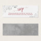 Cette carte miniature est parfaite pour ajouter une adresse web rsvp en ligne à vos invitations de mariage. Dispose d'un élégant design rouge et blanc avec des boucles et des tourbillons en faux feuille gris argenté en dentelle et des tourbillons et de la calligraphie de script lisant RSVP. Il y a de l'espace pour votre URL de site Web et un délai de réponse. Le dos est une belle couleur gris marbré.