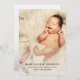 Design minimaliste ! Ce qui est amusant dans ce faire-part de naissance bébé est que nous ajoutons une marque © copyright avant le nom des parents fiers et un @ avant le lieu de naissance du bébé :) La photo du bébé est placée derrière une couverture argentée en dégradé ( voir l'image au verso de la carte ) pour correspondre à toutes les couleurs de photo et laisser le texte ressortir. Remplacez l'exemple de photo par votre propre photo et personnalisez ou customisez le texte pour répondre à vos besoins.
