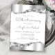 This trendy 25th wedding anniversary party invitation features sparkly silver faux foil and mirror tile top and bottom borders on a white background. The words "25th Anniversary" and the first names of the couple appear in casual silver gray handwriting script, with the rest of the customizable text in sans serif font.