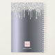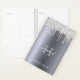 Un faux arrière - plan métallique à l'apparence argentée avec d'élégantes gouttes de parties scintillant faux argent, la peinture goutte à goutte. Personnalisez et ajoutez un nom, une lettre monogramme et un titre. Le nom est écrit en blanc avec un grand script de style à la main moderne avec des swashes. Texte blanc et gris. Pour que les swashes ne suppriment que le nom de l'échantillon, laissez les espaces ou émoticônes devant et après le nom. Parfait pour l'école, le travail ou l'organisation de votre vie personnelle/familiale.