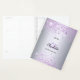 A faux silver metallic looking background decorated with purple faux glitter dust. Personalize and add your first name, monogram initials, full name and a year.