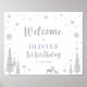 Ce signe d'anniversaire d'hiver merveilleux présente de mignons flocons de neige et le texte du script en parties scintillant argent. Parfait pour une fête d'anniversaire à thème hivernal pour votre petite fille !