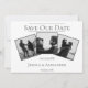 Annoncez votre date de mariage à vos amis et à votre famille avec ce moderne Save the Date à collage de 3 photos. La conception de l'annonce comprend trois emplacements de photos du couple heureux, une conception de texte épurée et un motif de diamant élégant au verso.