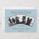 Annoncez votre date de mariage à vos amis et à votre famille avec ce moderne Simple 3 Photo Collage Save the Date. La conception de l'annonce comprend trois emplacements de photos du couple heureux, une conception de texte épuré et un motif de diamant élégant au verso.