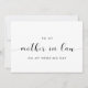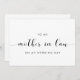 Une carte cadeau simple et minimaliste pour écrire un message personnel et sincère pour votre belle-mère le jour de votre mariage. Entièrement personnalisable avec vos couleurs préférées (texte et arrière - plan). Vous pouvez ajouter un message au dos ou le laisser vide si vous préférez écrire votre message à la main plus tard.