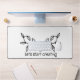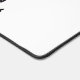 A simple and calm desk mat with a black rose drawing, a white background and a black back, with no other additions, and a motivational sentence for work.