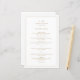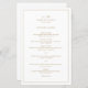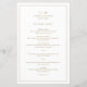 Un menu mariage simple au design moderne et élégant avec votre monogramme à deux lettres, vos noms et votre date entourés d'une fine bordure. Tout le texte est en faux or sur un arrière - plan blanc. Les polices et les couleurs arrière - plans peuvent être changées en n'importe quelle couleur en cliquant sur le bouton "personnaliser". Un design chic et design qui conviendra à un couple minimaliste. Ces menus mariages bon marché sont imprimés sur des feuilles de papier pour une option économique.
