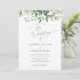 Belle et élégante invitation de mariage avec une belle aquarelle verte, associée à un magnifique script de calligraphie et une police serif élégante. Entièrement personnalisable avec les noms, les dates, l'emplacement et les couleurs pour correspondre à votre thème mariage.