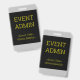Ce design de badge minimaliste comporte le message "ADMINISTRATEUR D'ÉVÉNEMENT". Un badge comme celui-ci pourrait éventuellement être utilisé pour indiquer que le porteur est un représentant officiel lors d'un événement. [~Z0000307]
