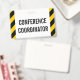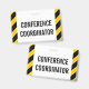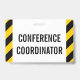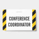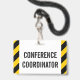 Cette conception de badge simple comporte le message "COORDINATEUR DE CONFÉRENCE". Il comporte également des bandes d'avertissement de couleur noire et jaune. [~Z0000286]