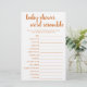Débrouillez les mots de bébé ! Un baby shower simple ou un genre dévoilent un jeu de partie de course de mots (avec les réponses ci-dessous) avec un script amusant et décontracté écrit à la main. Le design classique comprend une superposition de la typographie de citation à la main moderne. Pour d'autres couleurs ou produits correspondants, veuillez visiter le magasin JustFharryn Zazzle, ou contacter le concepteur, c/o Fharryn@yahoo.com Tous droits réservés. #bohochic #zazzlemade TOUCHE DE RÉPONSE : Bib, Play Pen, Rattle, Berceau, Shampooing, Porte bébé, Couverture, Un côté, Sac de couches, Poussette, Moniteur de bébé, Lullaby, Pacifier, Bouteille