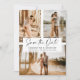 Upload your photos. Send your save the date card with this elegant black and white typography on a white minimalist background with 3 photo grid collage.